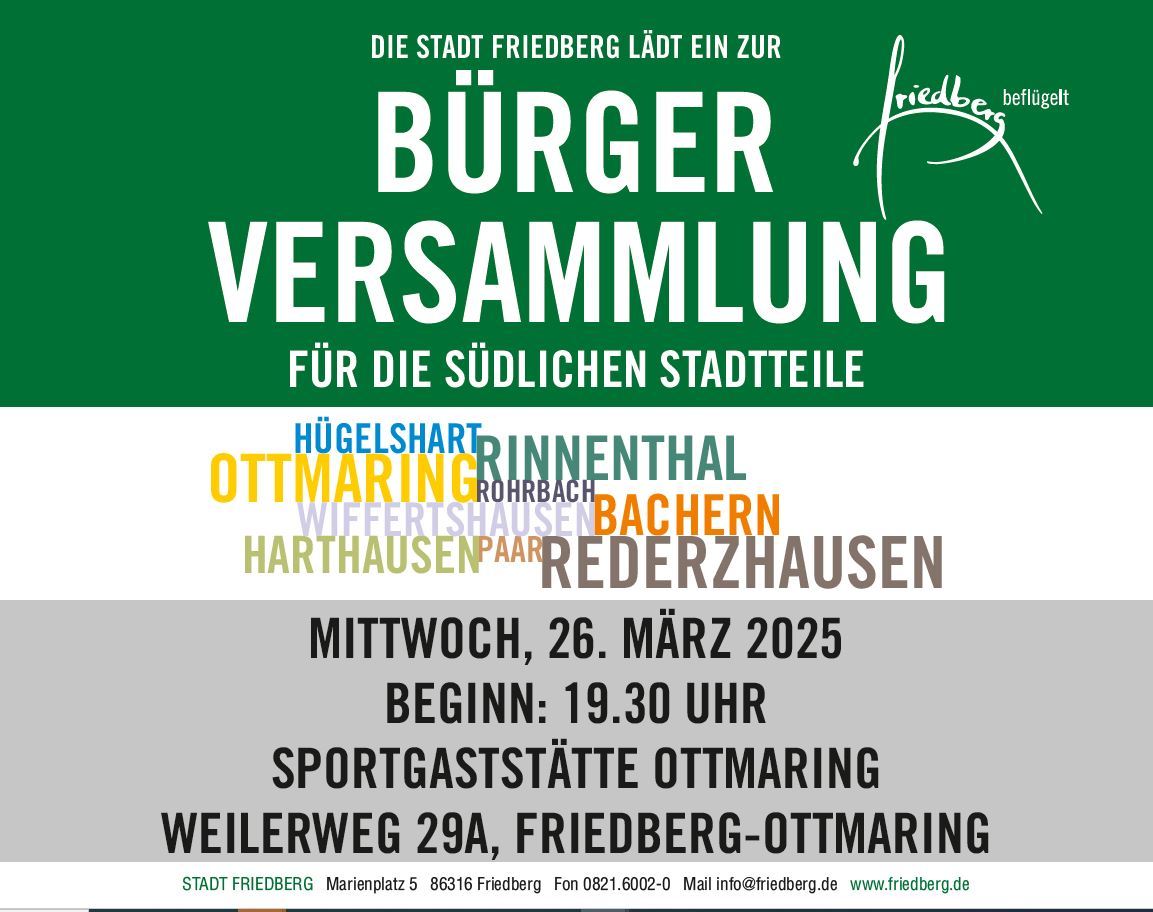 Bürgerversammlung für die Stadtteile Hügelshart, Ottmaring, Rinnenthal, Rohrbach, Wiffertshausen, Bachern, Harthausen, Paar und Rederzhausen