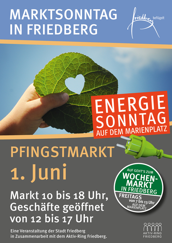 Die Einzelhandelsgeschäfte in der Friedberger Altstadt und das Fachmarktzentrum unterm Berg sind von 12 – 17 Uhr geöffnet, die bunten Marktstände entlang der Ludwigstraße präsentieren ihr vielfältiges Warenangebot bereits ab 10 Uhr. An diesem Marktsonntag stehen dazu zahlreiche Anbieter auf dem Marienplatz mit Rat und vielen Tipps rund um das Thema ENERGIE bereit. Hier finden Sie Innovation und Inspiration und können mit Experten so wie regionalen Anbietern ins Gespräch kommen.