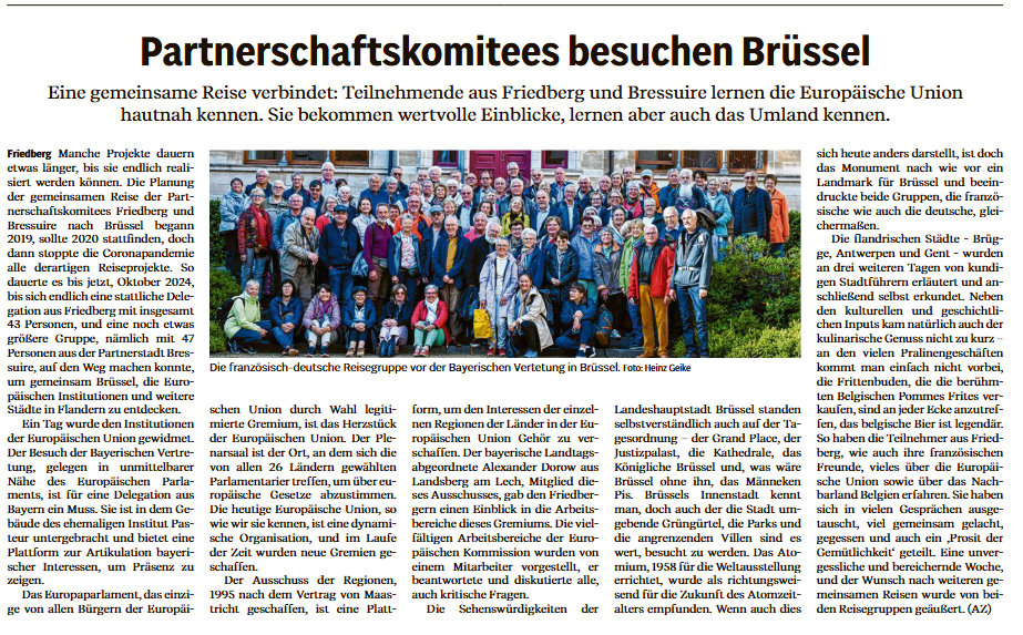 - Partnerschaftskomitees besuchen Brüssel - Friedberger Allgemeine vom 19. Oktober 2024