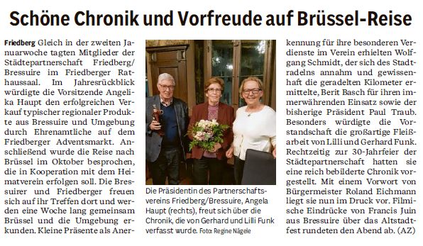 - Schöne Chronik und Vorfreude auf Brüssel-Reise - Friedberger Allgemeine vom 17. Januar 2024